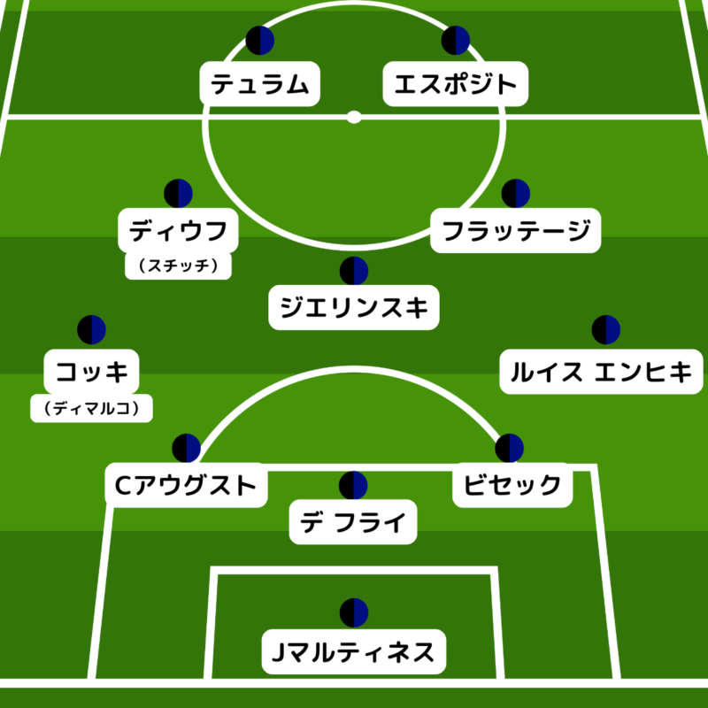 インテル育ちのGKフィリップ・スタンコビッチをはじめ、MFアルフレッド・ダンカンや主力FWアンドレア・アドランテらがベンチスタートとなる。