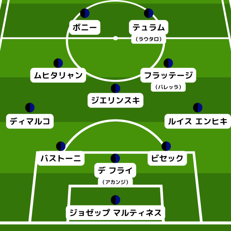 中盤はヘンリク・ムヒタリャンとピオトル・ジエリンスキの先発が濃厚で、もう1枠はダヴィデ・フラッテージかニコロ・バレッラのどちらか。『ガゼッタ』はフラッテージが55%と予想した。