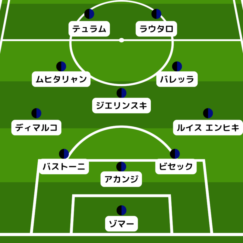 最終ラインはヤン・ビセック、マヌエル・アカンジ、アレッサンドロ・バストーニの3バック。前線はマルクス・テュラムとラウタロ・マルティネスのコンビ「ThuLa」が濃厚だ。