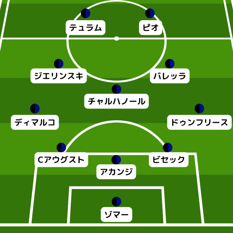 中盤ではハカン・チャルハノールが先発で復帰する可能性が高まっており、ニコロ・バレッラとピオトル・ジエリンスキがインサイドハーフに入る。