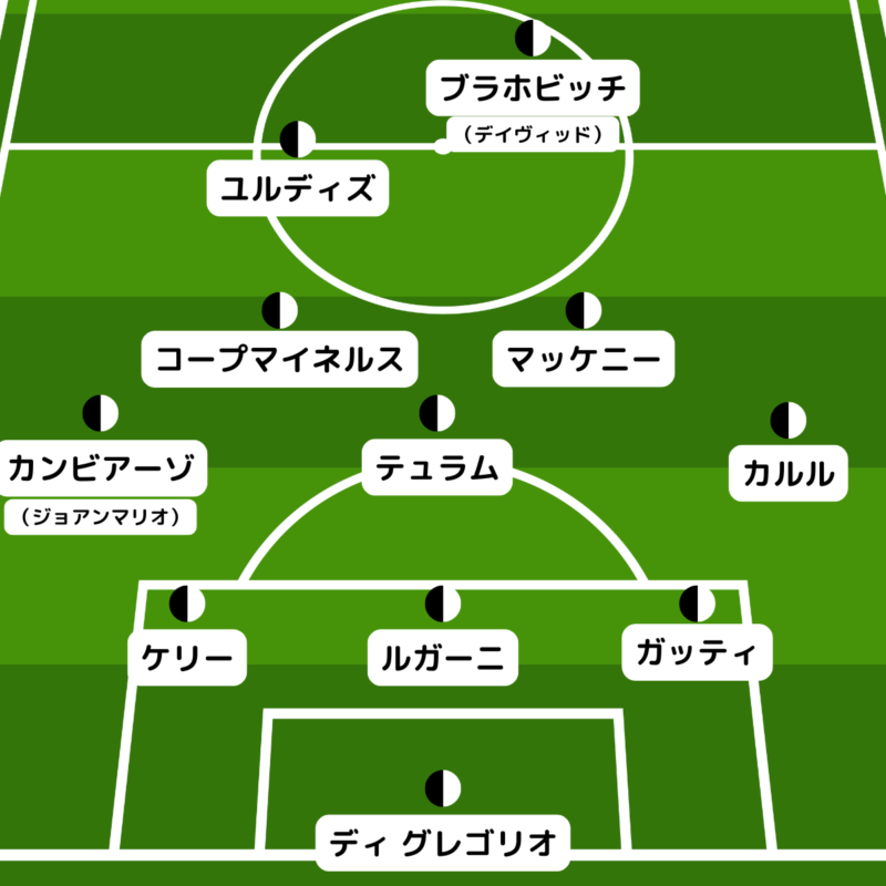 ユヴェントスはコモ戦のあとでシステムを3バックに戻す見込み。ピエール・カルルを右ウイングバックとして起用し、マヌエル・ロカテッリがスタメンから外れる可能性が高い。前線はドゥシャン・ブラホビッチが55%、ジョナサン・デイヴィッドが45%と予想された。