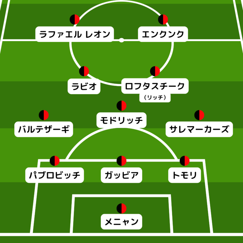 指揮官が明かしたとおり、ミランはプリシッチが発熱で欠場の可能性が高いとみられる。前線はラファエル・レオンとエンクンクとなる見込みだ。