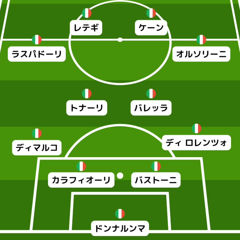 とくにリッカルド・オルソリーニが練習で好調だったため、右ウイングで先発する可能性が高い。また、そのほかのサイドプレーヤーも、バランスよりも攻撃に比重を置き、多くのゴールを目指す布陣を選びそうだ。